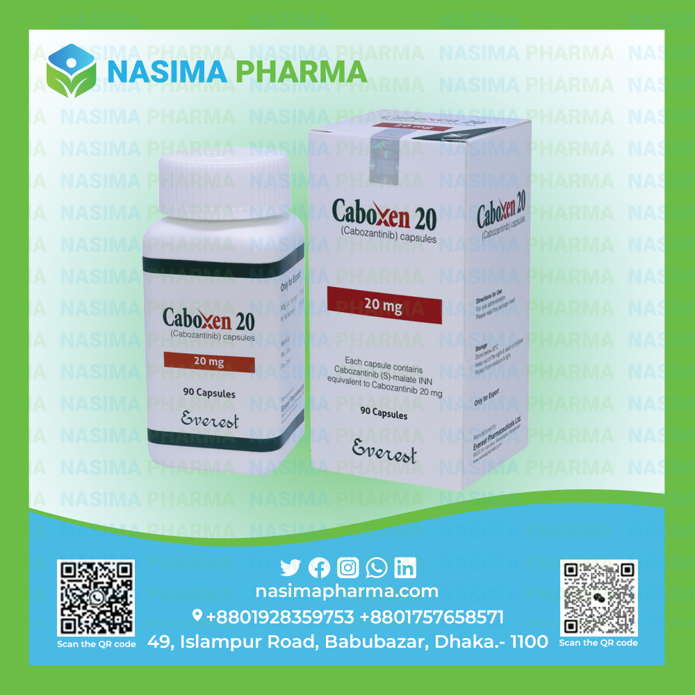 Caboxen 80mg tablets (20mg) is a chemotherapy medication that is used in the treatment of kidney cancer. It is also used in the treatment of liver cancer and thyroid cancer. It is a tyrosine kinase inhibitor that stops certain growth factors. Caboxen is a prescription-based medication given by the doctor.